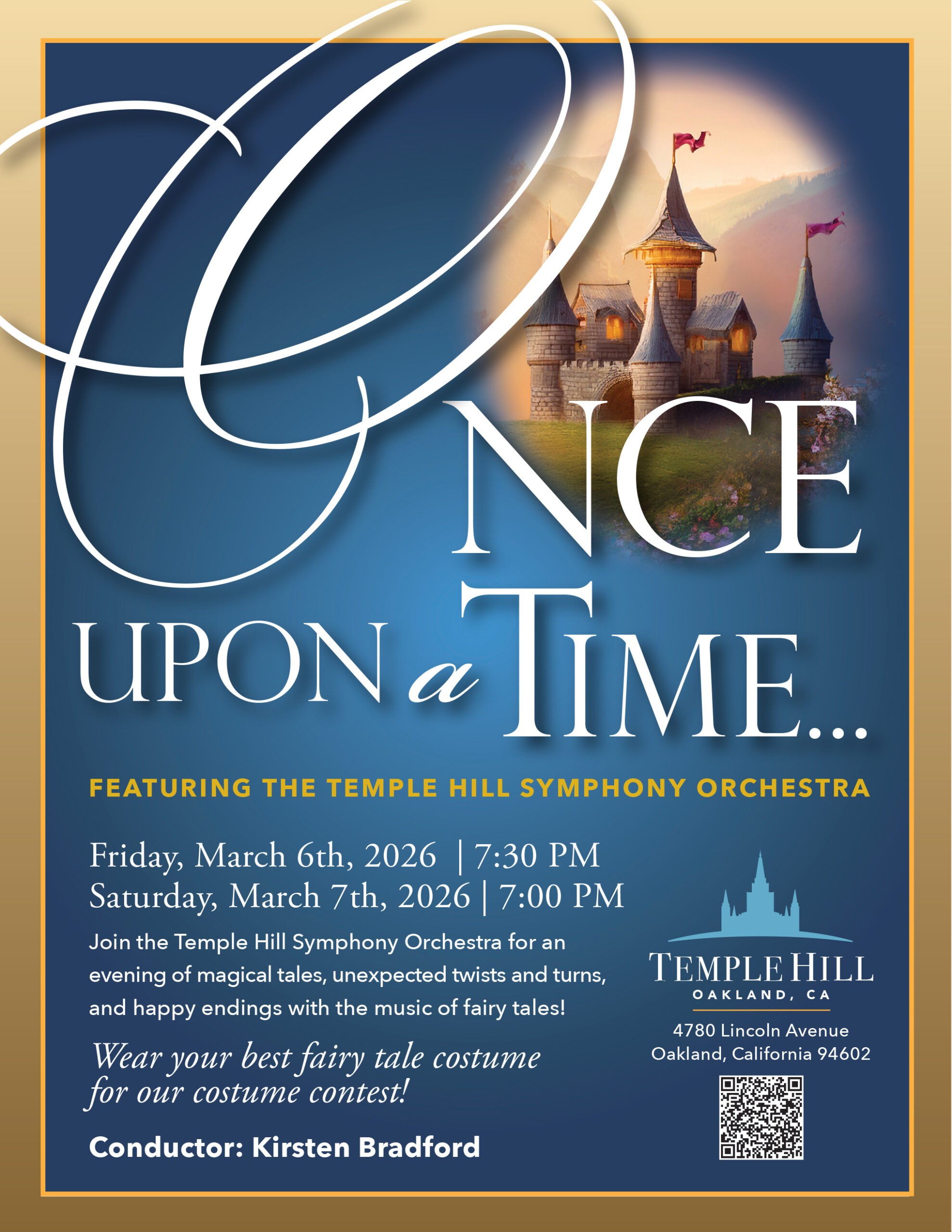 所有 活動 聖殿山交響樂團呈獻:很久很久以前… | 3月6日,晚上7:30 3月6日@ 7:30 下午 - 9:00 下午 太平洋標準時間 歡迎您於3月6日晚上7:30蒞臨坦普山禮堂,欣賞坦普山交響樂團帶來的精彩童話主題音樂會。這場充滿魔力的音樂會將帶領觀眾進入一個美妙的童話世界,聆聽那些曾令幾代人著迷的動人旋律。. 本次活動免費,老少咸宜。歡迎大家來參加! 預訂門票 添加到日曆 谷歌日曆 日曆 展望365 展望直播 細節 日期: 3月6日 時間: 7:30 下午 - 9:00 下午 太平洋標準時間 活動類別:表演節目, 交響樂 模糊 聖殿山交響樂團 電話: 510-531-1475 電子郵件: info@templehillsymphony.org 縮減 聖殿山大禮堂 林肯大街4780號 奧克蘭, 加州 94602 美國 + 谷歌地圖 電話: (510) 531-1475