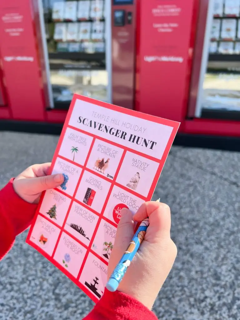Paano gumagana ang Temple Hill Holiday Scavenger Hunt: