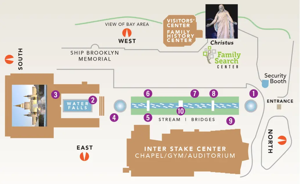 Begin at the Christus statue in the Visitors’ Center, where the Missionaries will explain the Holy Walk.